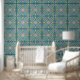 Pintado Baldosas florales verde azuladas y rosas Papel tap