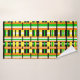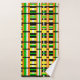Este juego de toallas tiene un toque moderno, en tonos naranja, amarillo, verde, negro y blanco.