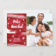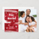 Esta tarjeta de Navidad moderno, rojo y blanco de la palabra "Feliz Navidad", en caligrafía escritura del cepo y rodeado de trazos de pintura, estrellas pintadas y confeti.
