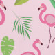Este es un hermoso patrón de flamencos rosados con hojas tropicales verdes sobre fondo rosa claro. Es un fondo de pantalla tropical fresco