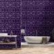 Actualice el aspecto de sus paredes con papel tapiz. Este papel tapiz de vinilo texturizado presenta una impresión de hoja gris oscura y clara sobre un fondo púrpura. Este patrón de hoja abstracto complementará una casa o una oficina modernas.