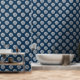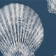 Un gran tapiz azul profundo con conchas blancas de conchas es perfecto para una casa de playa, un baño o cualquier habitación que necesite un toque de playa.