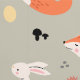 Papel de escritorio con un diseño moderno, decorado con un ilustracion divertido de un lindo conejo y zorro