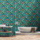 Pintado Papel de fondo moreno y floral sobre Verde azulado
