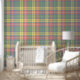 Mi obra de arte original aparece en este divertido fondo de pantalla, que consiste en un patrón de manchas en verde, rosa y amarillo dominando las rayas básicas. El tamaño es de 2 x 2 m, pero se pueden elegir otros tamaños. Este papel pintado de cáscara y palo está en vinilo texturado o también se puede elegir vinilo liso.