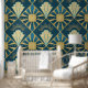 Pintado Papel tapiz de diseño Art Deco Verde azulado y Gol