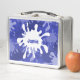 Una moderna caja de almuerzo metalizado con cuadros azules abstractos permite introducir tu nombre. Para obtener ayuda sobre personalización o para discutir un diseño personalizado, póngase en contacto con https://t.me/KBMD3signs_chat.