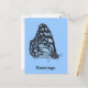 La pintura de una mariposa negra con manchas azul claro, de Cheryl Paton, está impresa en postales personalizados. Saludos es el texto que aparece en la parte delantera de la tarjeta, o puede personalizarse fácilmente en el formulario de plantilla.