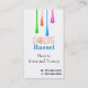Tarjeta de contacto/tarjeta de llamada de momia, hecha en blanco con goteos de pintura coloridos, en la parte delantera de la tarjeta. La parte posterior de la tarjeta está hecha en azul sólido. Personalice el texto delante y atrás para que se ajuste a sus necesidades. Excelentes niños o mami fecha de juego, tarjeta de red lista para personalizar con su propia información.