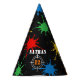 Sumérjase en la diversión con este gorra de fiestas con temática de paintball, con gráficos de cuadros en negrita y personalizable con el nombre y la edad de su hijo. Perfecto para niños, adolescentes y niños, este colorido gorra le da un toque lúdico a los trajes fiestas y a las fotos. ¡Ideal para los cumpleaños, la estrella de cumpleaños o toda la brigada!