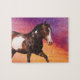 Fotografía de un caballo hermoso de la pintura que galopa durante una salida del sol colorida. ---- La imagen es con derechos de autor por Christina Spiegeland.