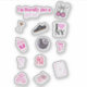 El paquete de 11 pegatinas del Pegatina del Chica Pinterest es perfecto para decorar tu laptop, funda de teléfono, botella de agua, periódico y mucho más! Colección de pegatinas, cada uno cortado y colocado sobre un fondo blanco. A partir de la parte superior izquierda hay una bola de disco de plata, seguida de una cinta rosa atada en un arco. Junto a ella hay una mordida blanca de seis lados con puntos rojos. A la derecha de la muera hay una zapatera blanca con rayas negras. Debajo de la zapatilla, hay una vieja cámara digital de la escuela con 'SONY' escrito en ella y varios pegatinas. Al lado de la cámara hay un vaso de martini con una aceituna y dos cerezas en un palillo. Al lado del cristal hay una insignia de "❤️ NY". Debajo de la insignia hay una carta de juego de As of Spades, una gorra azul de Nueva York, y una bola negra de 8 con el número '1' encima.