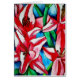 con arte original de la pintura acuarela de Sacha Grossel de una flor de lirio rosa intenso y caliente. Este sujeto botánico tiene pétalos intensamente rosados contra un fondo azul cielo en un diseño colorido y floral. La vista de las flores desde el exterior es muy apreciada por los amantes del diseño floral.