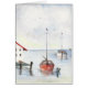 Los veleros atracados son una pintura de la acuarela que representa dos veleros atracaron cerca de la orilla con un muelle y un boathouse en el lado. El agua es calma y el cielo tiene volar de tres pájaros. Un pedazo de la línea de la playa se puede considerar en el lado. Los colores pálidos de azul y del gris dominan la pintura con tactos de rojo y de amarillo claro. Impreso de una pintura original de la bella arte en el papel por JC Prida. 2008