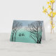 Say Hello, con esta pintura de árboles de otoño desnudos, sin hojas, retratados como una silueta frente al cielo azul y turquesa y las nubes blancas. El interior está en blanco para su propio mensaje. Gracias por comprar en CherylsArt en Zazzle.