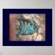 Un pez de agua salada azul ilustrado y luego fotografiado. Creación original de mundo mixto