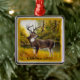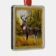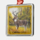 Ornamento navideño con pintura de David E Paul. Venado parado en un hermoso campo de césped dorado con estanque detrás de él.