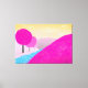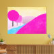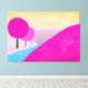 Original pintura acrílica digital horizontal de hermosas colinas nítidas y brillantes de color rosa y un río azul con tres árboles con el cielo amarillo atardecer. Perfecto como regalo o siéntete añadiendo este bonito cuadro a tu espacio. Una imagen inspiradora y brillante para ayudarle a encontrar energía para sus tareas diarias. La obra de arte es una auténtica reproducción de la pintura digital original del artista: arte del copyright ©Natasa Borenovic, abril de 2022