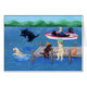 Pintura banal y divertida del labrador retriever de la orilla del lago pintada por Naomi Ochiai de Japón. ¡Labrador negro, Labrador amarillo, chocolate Labrador se pinta en la imagen!! Los perros del laboratorio están teniendo un día agradable en el lago. Pesca y nadar y tomar una siesta. Regalos maravillosos para los amantes del perro que aman Labradors.