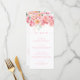 El menú presenta un diseño floral de primavera rosa peony. Añade un agradecimiento a tus invitados en el reverso del menú o déjalo en blanco. El encabezado del guión es una imagen que no se puede editar. El resto del texto es totalmente editable. Para una personalización más avanzada de este diseño, simplemente seleccione el botón "Personalizar" de arriba.