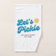 Una divertida toalla de pickleball con un pickleball, "Let's Pickle" en un divertido tipo de letra retro y tu texto personalizado. Añadir un nombre de jugador, nombre de club de pickleball, dicho gracioso, etc. Cambia fácilmente el color de fondo también. Hace un favor perfecto para una fiesta de pickleball, regalo de cumpleaños o de vacaciones o premio/premio del torneo.
