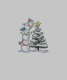 Un ilustracion caprichoso con tres hombres de nieve apilados en una pirámide juguetona. El muñeco de nieve de abajo apoya a los otros dos, mientras que el muñeco de nieve coloca cuidadosamente a una estrella dorada sobre un árbol de Navidad lleno de nieve. Cada muñeco de nieve lleva un colorido gorra de invierno y una bufanda, con nieve cayendo a su alrededor, creando un ambiente festivo y alegre.