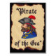 La pintura de Linda Baysinger Peck de un capitán pirata, sobre el fondo del pergamino. El texto dice "Pirata del Mar". Grandes cartas para los que disfrutan de las festividades renacentistas y las aventuras de vómito. © Linda Baysinger Peck Todos los derechos reservados