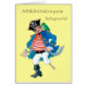 Una carta divertida de Get Well, con un alegre pirata y su loro sobre un fondo blanco, de una pintura acuarela de Judy Adamson. El texto de la portada es '¡Un pájaro pequeño me dijo que te sientes mal!' Puede editar el texto interior si lo desea.