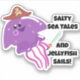 Embarque en un caprichoso viaje oceánico con nuestro Pegatina Pirate Jellyfish Adventure! Este encantador pegatina cuenta con una deliciosa medusa violeta que se coloca sobre un gorra pirata clásico, con cráneo y huesos cruzados. La expresión lúdica agrega un toque de fantasía a la persona de esta criatura marina. Adornado con la audaz declaración "SALTY SEA TALES AND JELLYFISH SAILS", este pegatina resume el espíritu de las aventuras náuticas y la diversión en los cuentos. Perfecto para personalizar ordenadores portátiles, botellas de agua o portátiles, seguro que le dará una sonrisa a cualquier amante del mar o entusiasta de la narración.