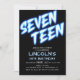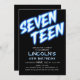 Dale a tu fiesta un brillo importante con esta invitación azul neón de 17 años para los chicos. La tipografía audaz y el excitante efecto neón le dan a este diseño un ambiente divertido y masculino. Perfecto para el cumpleaños o fiesta de arcade de tu adolescente favorito. ¡Solicite sus invitaciones impresas y suministros de fiesta o descargue sus invitaciones digitales por un día que nunca olvidarán!