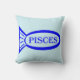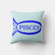 Esta impresionante almohada presenta un contorno de un pez azul con detalles en el interior. También hay un texto que dice Pisces dentro del contorno del pez. Este diseño es ideal para personas con cumpleaños entre el 19 de febrero y el 20 de marzo.