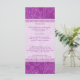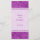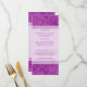 Los paisley remolinos y las flores en violeta brillante crean un magnífico patrón para esta carta de menú boda. Impresiones de texto personalizadas en un panel de luz acentuado por bordes que repiten el patrón de fondo. Una encantadora adición a cualquier boda. Utilícelo como menú o cualquier pieza impresa que necesite para su boda, ducha o fiesta de compromiso. Personalizar con tu propio menú u otra información en la parte delantera y agrega tu(s) nombre(s) y fecha del evento o información adicional del menú en la parte posterior con el mismo patrón. Disponible en colores alternativos con productos coincidentes. com