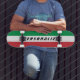 Piso de patinaje con nombre propio de la bandera italiana patriótica. Diseño de tablero Guay de madera para niños y chicas. Divertida idea de regalo de cumpleaños para los niños. Personalizar con nombres personalizados o letras monográficas. Increíble idea de regalo de cumpleaños para niños, hijos, nietos, sobrinos, primos, hijas, hermanas, hermanos, amigos, etc. Plantilla moderna de tipografía. Bandera del país de Tricolore de diseño de Italia con plantilla moderna de tipografía.