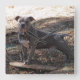 Este reloj de pared muestra un hermoso Pitbull de la Nariz Azul llamado Sarge. Sarge está parado con sus musculares patas traseras estiradas detrás de él y sus patas delanteras encima de su juguete favorito, un patinador. Este reloj de pared es perfecto para los amantes del perro.