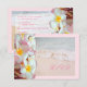 PixDezines hermoso kona rosa plumeria y la playa con borde rosa pálido (color de borde DIY). Esta tarjeta es perfecta para su boda de destino tropical. Evento DIY, fuentes, color de las fuentes.