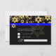 PixDezines rsvp faux gold star of david Bar Mitzvah... La combinación azul real y negro personalizable es sin duda la más llamativa de los colores y muy de moda esta temporada. El fondo puede ser personalizado para cualquier ocasión especial, es decir, casa abierta de cumpleaños, etc. Personalizable completo, cambia el color de fondo. Puede elegir sus propios colores hexacromo para añadir a su fondo, texto, recorte, etc. Todo el espectro del arco iris está al alcance de tus dedos. A continuación se muestra un enlace a la "gráfica hexacromática". Simplemente haga clic en el botón "personalizar" >> y vaya a la pestaña "editar", >> haga clic en "fondo" y elija sus colores.com™ y PixDezines™ en zazzle.com