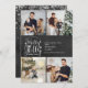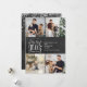 Un elegante diseño de vacaciones de collage de 4 fotos Holly Jolly para que lo personalices con tus fotos favoritas, mensaje, nombres y año en un fondo de pizarra. El reverso presenta copos de nieve que caen sobre un fondo de pizarra coincidente. Diseñado por Thisisnotme©