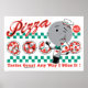 ¡ATENCIÓN A LOS AMANTES DE PIZZA! (¡¿Eso es todo el mundo, verdad?!) Ahora puedes disfrutar de un nuevo diseño retro fresco con tu comida favorita... pizza! Completamente avalado por Rolly the Pizza Cutter, y garantizado sabroso tanto si te gusta el estilo de Nueva York como el plato profundo de Chicago... tómalo de Rolly - el tipo que recibe la primera rebanada - esta impresión es deliciosa! Este diseño original de Ridge Rooms inspirado en la publicidad de mediados de siglo está un poco molesto para simular el desgaste vintage.