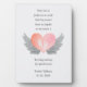 Esta placa de pérdida de bebé es adecuada para un bebé varón, niña o si el sexo del bebé era desconocido. Es un recuerdo considerado después de un aborto espontáneo, mortinato, pérdida neonatal o muerte súbita del lactante. El diseño incluye alas de ángel grises suaves, un corazón rojo con huellas de bebé dentro y la cita 'no hay huellas tan pequeñas'. El nombre y la fecha del bebé están en la parte delantera de la placa.