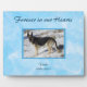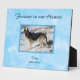 Simple y elegante placa de foto de mascota memorial. "Por siempre en nuestros Corazones" sobre un fondo azul turquesa abstracto. Personalice con la foto de su propia mascota, y cambie fácilmente cualquier texto para adaptarlo a su gusto.