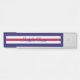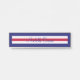 Escritorio patriótico de los E.E.U.U., pared, puerta, blanco rojo de la placa de identificación y azul cúbicos, colgantes.
