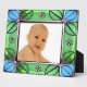Bonito marco con margaritas en vidrio verde y azul suave. Personalizar que añada una foto que te guste más.