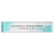 Elegante plato con nombre y título sobre un fondo acuático azul.