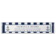 Un elegante escritorio con una placa con un tema náutico. Incluye atrevidas rayas marinas y blancas que corren verticalmente hacia abajo. En dirección al centro, la información está flanqueada por dos anclas que completan el aspecto náutico.