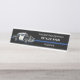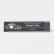 Esta elegante placa con su nombre es la elección perfecta para los oficiales de policía con un auto de policía blanco y negro vintage a la izquierda y detalles de su nombre y departamento sobre la tipografía blanca a la derecha en un fondo negro con una delgada línea azul en el centro.