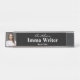Enhance your professional presence with this elegant author desk name plate, meticulously designed in a sophisticated black and white monochrome aesthetic. This exclusive name plate serves as both a stylish decoration and a functional tool, featuring a designated area for displaying the author's photo or book cover. It not only captures attention with its refined design but also adds a modern, professional touch to your book signing or promotional event. Perfect for creating a lasting impression in any literary setting, this name plate combines elegance with practicality to showcase your personal brand with distinction.