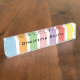 Patrón geométrico lineal, rectangular, rayado de tonos pastel arcoiris de azul, naranja, verde, rosa, púrpura, rojo y amarillo.