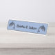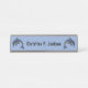 Este escritorio o placa con nombre colgante es azul claro con dos saltos como delfines azul profundo con estómagos blancos en cada extremo. Personalizar tu nombre con la plantilla.