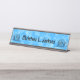 Este escritorio o placa con nombre colgante es un patrón abstracto de azul acuático claro y oscuro con dos divertidos caracoles personalizados con conchas azules en un patrón de tintes de corbata. Personalizar tu nombre con la plantilla.