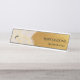 Elevate your luxury workspace with this chic acrylic desk name plate, featuring a beautiful abstract gold ribbon design that gives a high-end, metallic sheen. This modern accessory is perfect for a jewelry business, luxury consultant, or boutique owner. The design is fully customizable with your name and title, adding a sophisticated, modern flair to any upscale office or showroom environment. It also makes a perfect executive gift for a general manager or CEO.
